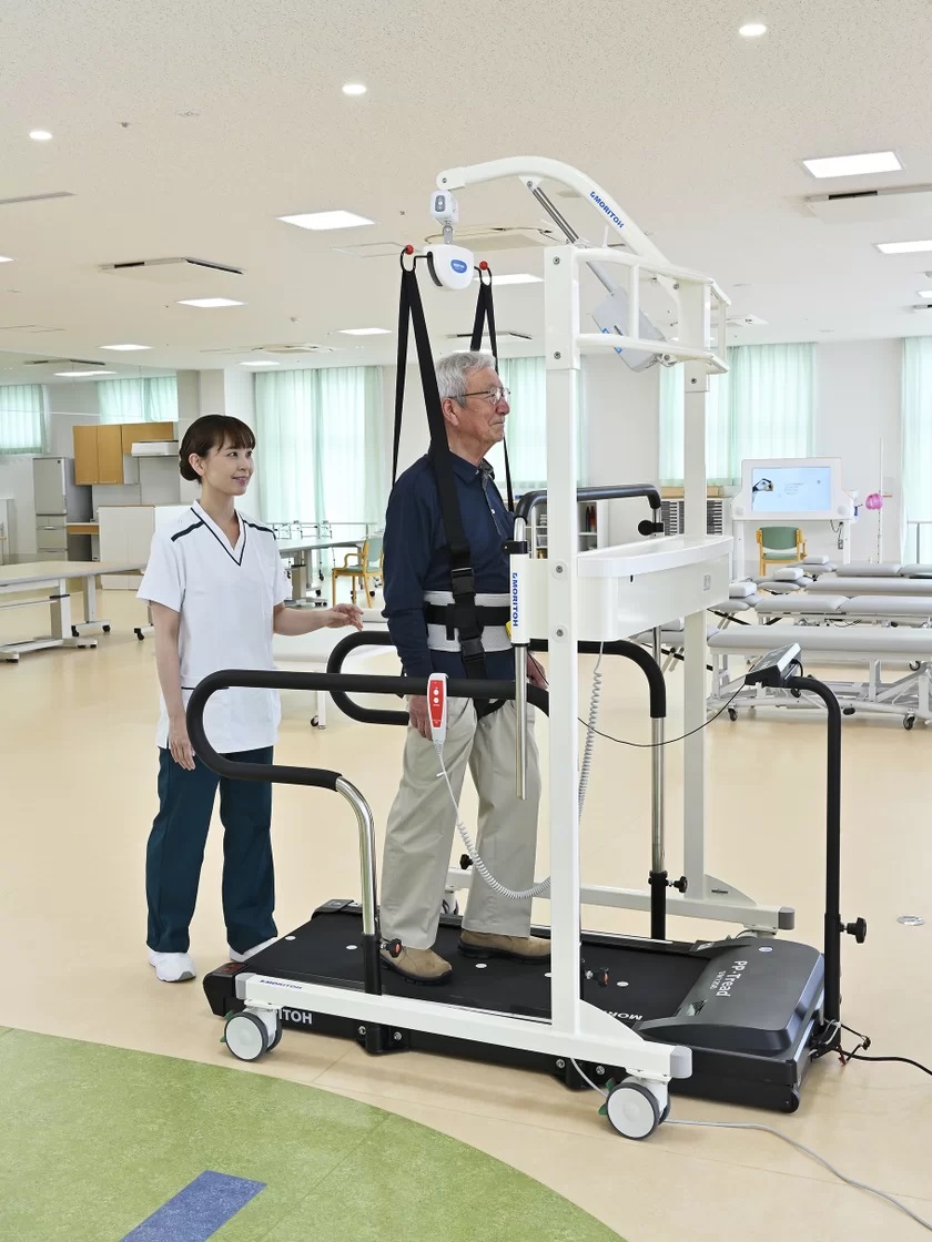เครื่องพยุงผู้ป่วยระหว่างการฝึกเดิน เคลื่อนไหว หรือการทำกายภาพบำบัด โดยใช้สายรัดและระบบยกที่ออกแบบมาเพื่อรองรับน้ำหนักทั้งหมดของร่างกาย อุปกรณ์สามารถรองรับน้ำหนักของผู้ป่วยได้สูงสุดถึง 100 กิโลกรัม